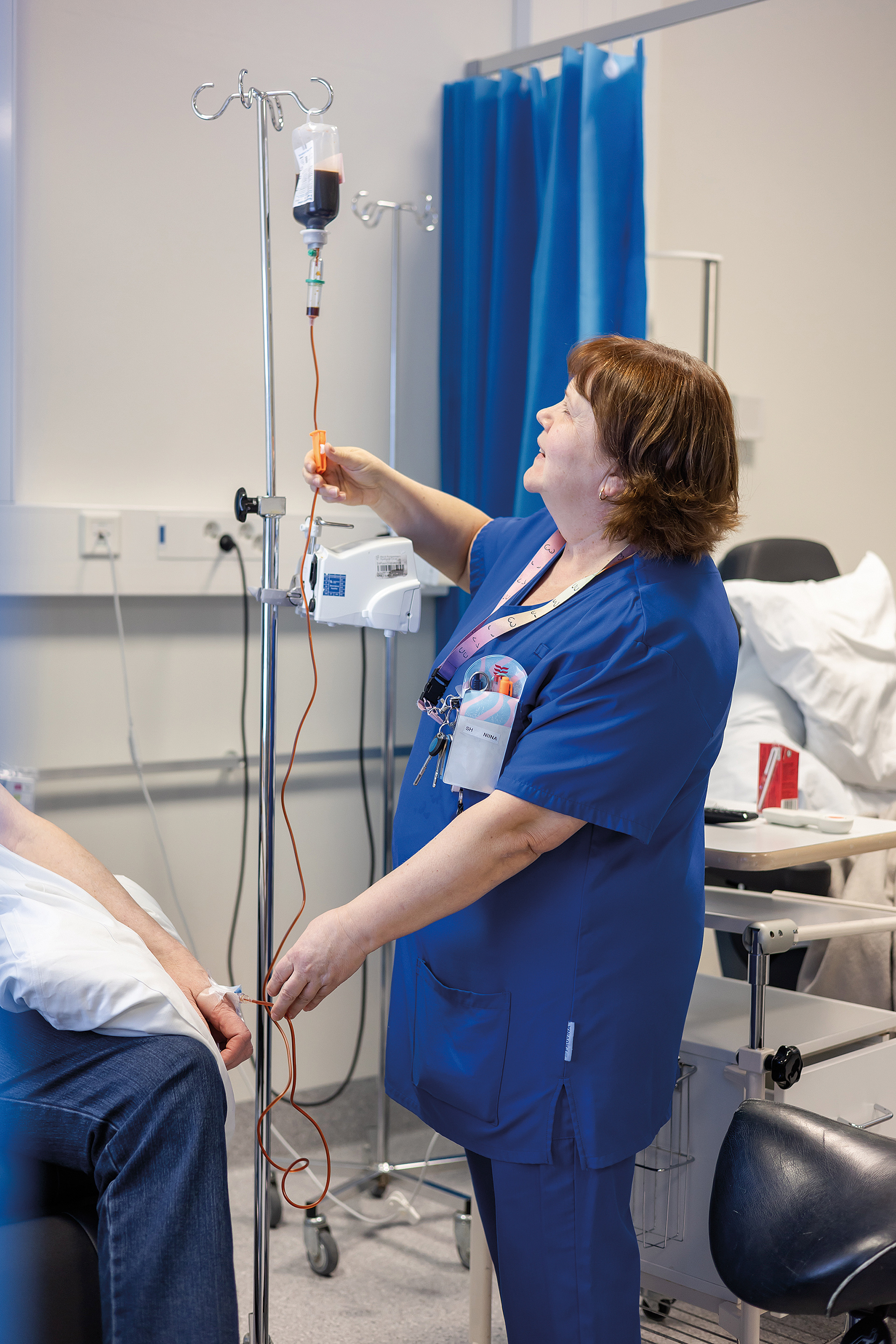 Sairaanhoitaja Niina Pukkisen mukaan rautainfuusiot ovat tyypillinen hoitomuoto päiväsairaalassa.