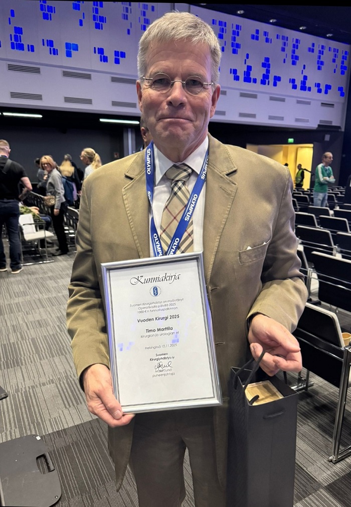 Vuoden kirurgi -tunnustus kirurgian ja urologian erikoislääkäri Timo Marttilalle